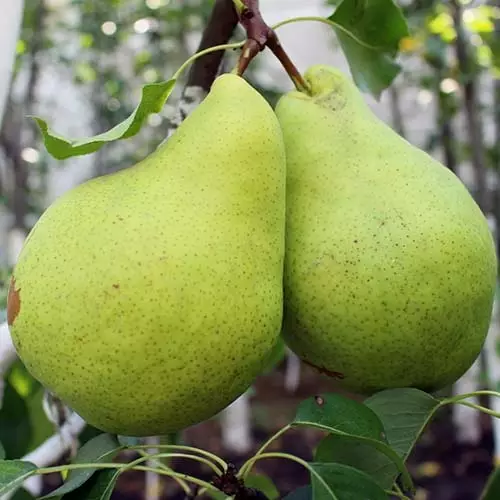 Плоди великого розміру, маса сягає 250 грамів, окремі екземпляри можуть важити до 500 грамів. Груші мають правильну, округлу форму та гладку поверхню. Шкірка не товста, щільна, при настанні знімальної стиглості має зелено-жовтий колір, у період споживчої зрілості – яскраво-жовтий. На плодах можна помітити невеликі за розміром золотаві плямки. М’якуш кремового відтінку, соковитий та ніжний, має кисло-солодкий смак, слабкий аромат. Дозріває врожай у середині вересня. У холодильнику груші можуть зберігатися до кінця осені. Плоди добре переносять транспортування.