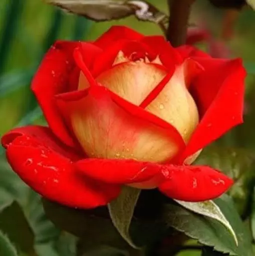 - келихоподібні бутони ідеальної форми, зовнішня поверхня пелюсток забарвлена в ніжний кремово-жовтий колір, внутрішня – густого вишнево-червоного відтінку.