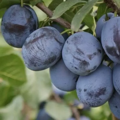 Плоди широкоовальні, великі, окрема слива досягає у вазі до 60 грам, гранатового кольору, покриті інтенсивним світло-блакитним восковим нальотом, з дрібними підшкірними цяточками. М'якоть соковита і щільна, зелено-жовтого забарвлення. Смак десертний, приємний, чим довше плоди висять на дереві - тим вони смачніші. За своїми смаковими якостями плодів цей сорт займає перше місце серед всього асортименту пізніх сортів слив. Кісточка середня, дуже легко відділяється. Плоди дозрівають в кінці серпня - на початку вересня.