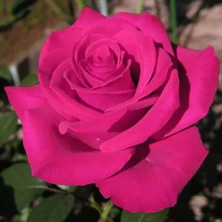 Троянда сорту Топаз (Topaz) насиченого рожево-бузкового кольору, з великим келихом. Яскраві рожеві пелюстки троянди Топаз чудово гармонують листям інтенсивного зеленого кольору. Як і прекрасний, дивний камінь – рожевий топаз, ця троянда всім своїм виглядом символізує піднесеність і романтику.