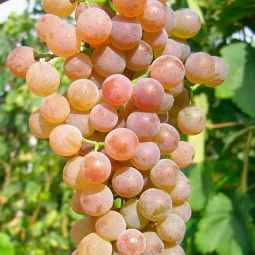 Грона циліндро-конічні, середньої величини, масою 150-200 г, помірно-щільні. Ягоди середні, масою 1,3-1,5 г, овальні, рожеві, з сортовим ароматом. М'якоть соковита, шкірка тонка. Цукристість 19-21%, кислотність 8-9 г/л. Визрівання пагонів хороше. Плодоносних пагонів 85%, коефіцієнт плодоношення 1,8. Навантаження 60 очок на кущ при довжині обрізки плодових лоз на 3-4 очка. Зважаючи на високу плодоносності може знадобитися нормировка врожаю.