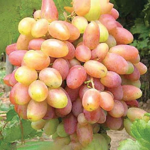 - форма виноградин видовжена, колір – рожево-жовтий (зустрічаються кущі з однотонними ягодами рожевого або білястого відтінку);