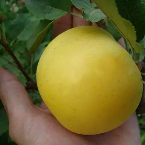 Плоди масою 250 г, жовто-зелені, блискучі, з легким сонячним рум'янцем, округлої форми, злегка приплюснуті зверху. Зовні дуже красиві.