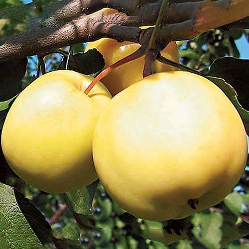 Плоди великі (140–160 г), плоско-округлі або округлі, з помітними п'ятьма ребрами, часто несиметричні, блідо-жовті. М'якуш жовтувато-кремова, середньої щільності, соковита. Смак хороший або вище середнього. Знімальна стиглість — ІІ декада серпня. Товарність плодів висока.