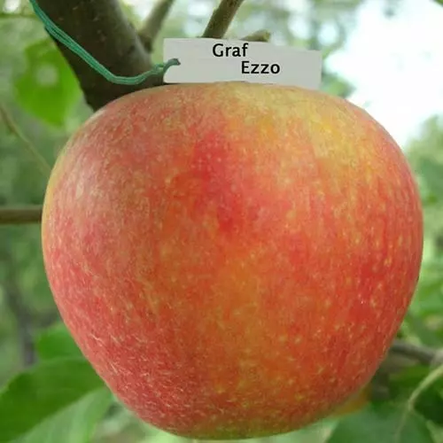 Яблуня Граф Еззо. Популярний зимовий сорт яблук німецького походження. Сильноросле дерево з округлою кроною середньої густоти. Плоди (160-170г), світло-зелені з темно-червоним розмитим рум'янцем. М'якоть жовтувато-кремова, середньої щільності, середньої зернистості, соковита, гармонійного кисло-солодкого смаку. Плоди дозрівають в кінці вересня. Сорт зимостійкий і посухостійкий.