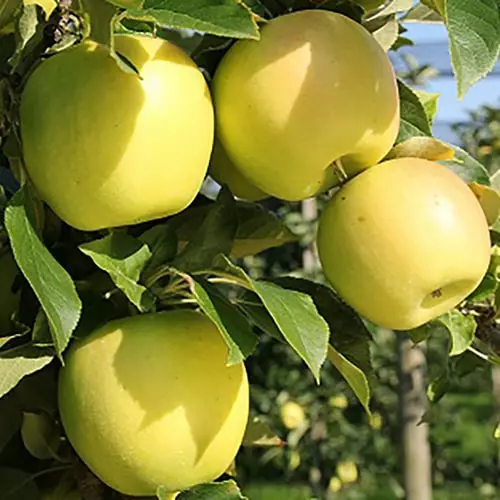 Яблоня Опал – новий зимовий сорт чеської селекції (Голден Делішес х Топаз). Дерево стриманої сили росту, зимостійке, швидкоплідне, врожайне. Плоди середнього розміру, округлі, шкірка жовта, гладка, блискуча, досить груба. М’якоть жовта, щільна, середньої соковитості, солодка, з особливим тонким ароматом, не схожим ні на один з батьківських сортів. Знімна зрілість настає на початку жовтня, споживча – з листопада до квітня. Імунний до парші, борошнистою росою не страждає. Придатний для споживання у свіжому вигляді і для переробки. Це один з найбільш морозостійких сортів, також його відрізняє висока скоростиглість. Щорічно він дає солідний урожай і в цьому відношенні дуже зручний для фермерів.