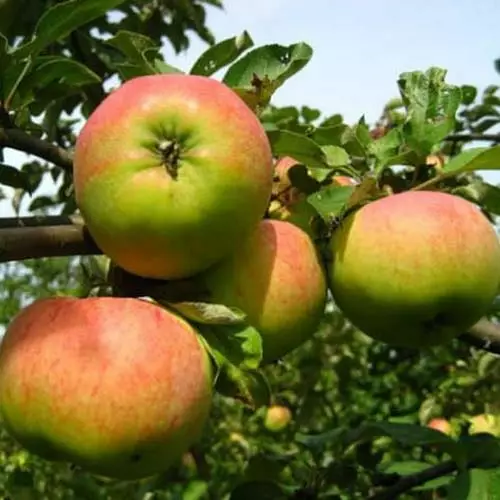Плоди середнього розміру. Вага від 120 г до 180 г. Зовні яблуко виглядає апетитно: блискуча щільна шкірка, світло – жовтого кольору, з червоними розмитими смужками. Сам по собі плід соковитий, з твердою м’якоттю кремового відтінку. Смак кисло-солодкий, володіють відмінним ароматом.