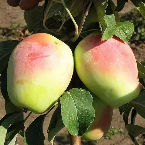 Плоди масою близько 150 г і більше, подовжено-циліндрової форми, зелено-жовті, з рожево-червоним рум'янцем з сонячного боку. М'якоть білого кольору, соковита, щільна, з винним ароматом. Плоди транспортабельні, добре зберігаються.