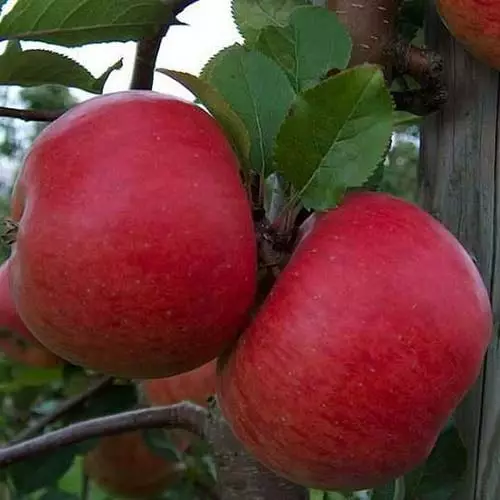 Яблона Топаз - сорт чеської селекції. Дерево середньоросле, з округлою кроною. Плодоносить регулярно і щедро. Плоди середніх розмірів, сплющено-округлі, зеленувато-жовті, з неяскравим буровато-червоним плямистим розмитим рум'янцем, який покриває 30-60% поверхні, на тлі якого добре помітні темно-червоні штрихи. М'якоть кремова, щільна, середньозерниста, дуже соковита, ароматна, гарного кислувато-солодкого смаку. Знімна зрілість настає в кінці вересня - на початку жовтня.